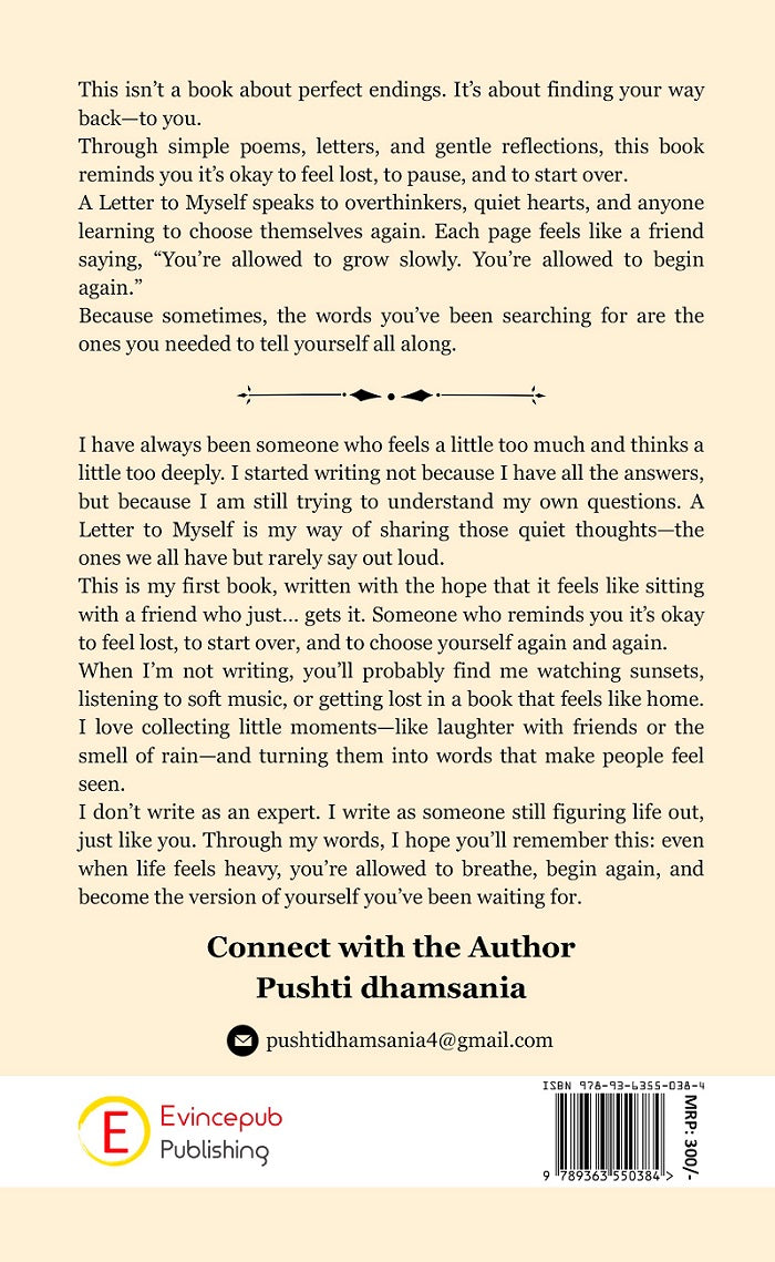 I have always been someone who feels a little too much and thinks a little too deeply. I started writing not because I have all the answers, but because I am still trying to understand my own questions. A Letter to Myself is my way of sharing those quiet thoughts—the ones we all have but rarely say out loud.