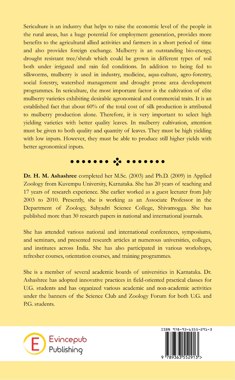 Sericulture is an industry that helps to raise the economic level of the people in the rural areas, has a huge potential for employment generation, provides more benefits to the agricultural allied activities and farmers in a short period of time and also provides foreign exchange. Mulberry is an outstanding bio-energy, drought resistant tree/shrub which could be grown in different types of soil both under irrigated and rain fed conditions. In addition to being fed to silkworms, mulberry is used in industry, medicine, aqua-culture, agro-forestry, social forestry, watershed management and drought prone area development programmes. In sericulture, the most important factor is the cultivation of elite mulberry varieties exhibiting desirable agronomical and commercial traits. It is an established fact that about 60% of the total cost of silk production is attributed to mulberry production alone. Therefore, it is very important to select high yielding varieties with better quality leaves. In mulberry cultivation, attention must be given to both quality and quantity of leaves. They must be high yielding with low inputs. However, they must be able to produce still higher yields with better agronomical inputs.