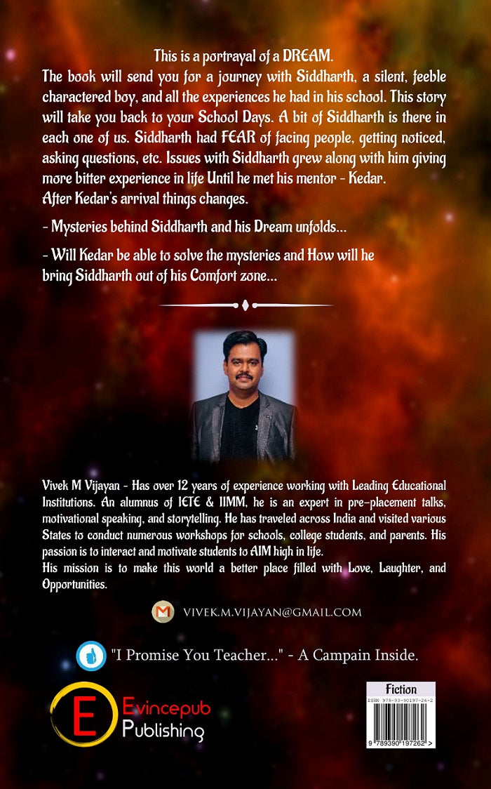 The book will send you for a journey with Siddharth, a silent, feeble charactered boy, and all the experiences he had in his school. This story will take you back to your School Days. A bit of Siddharth is there in each one of us. Siddharth had FEAR of facing people, getting noticed, asking questions, etc. Issues with Siddharth grew along with him giving more bitter experience in life Until he met his mentor – Kedar.