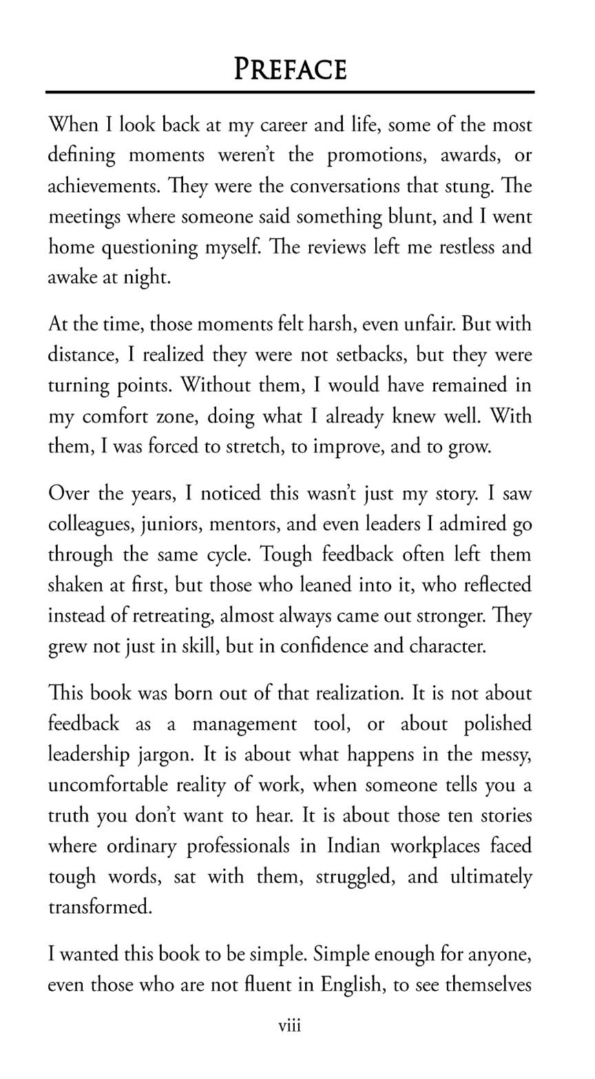 In today’s fast-paced corporate landscape, growth doesn’t come from applause; it comes from facing the hard truths. Forged in Feedback brings together 10 powerful, real-life stories of professionals who confronted tough feedback, embraced discomfort, and transformed it into growth.