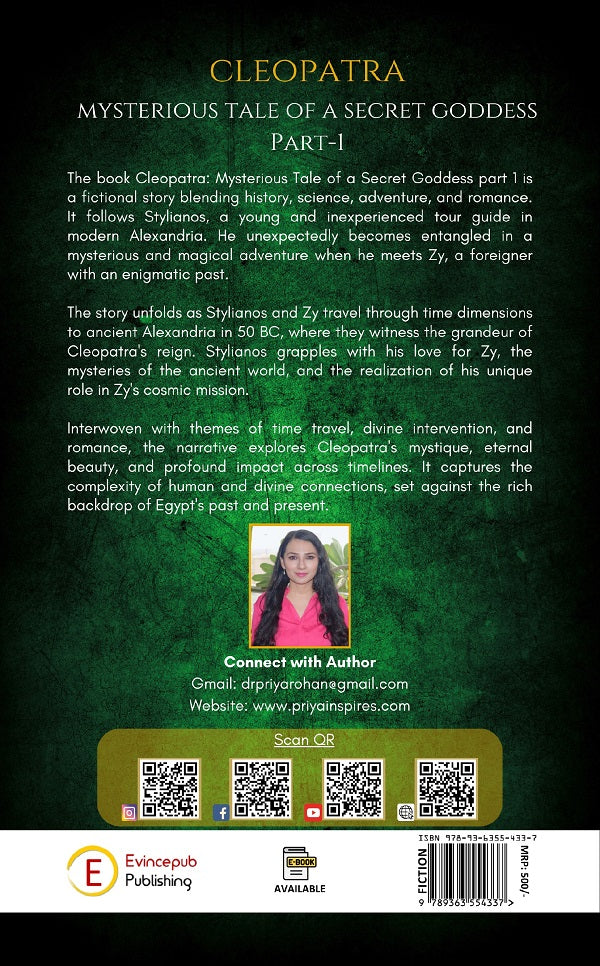 The book Cleopatra: Mysterious Tale of a Secret Goddess is a fictional story blending history, science, adventure, and romance. It follows Stylianos, a young and inexperienced tour guide in modern Alexandria. He unexpectedly becomes entangled in a mysterious and magical adventure when he meets Zy, a foreigner with an enigmatic past.