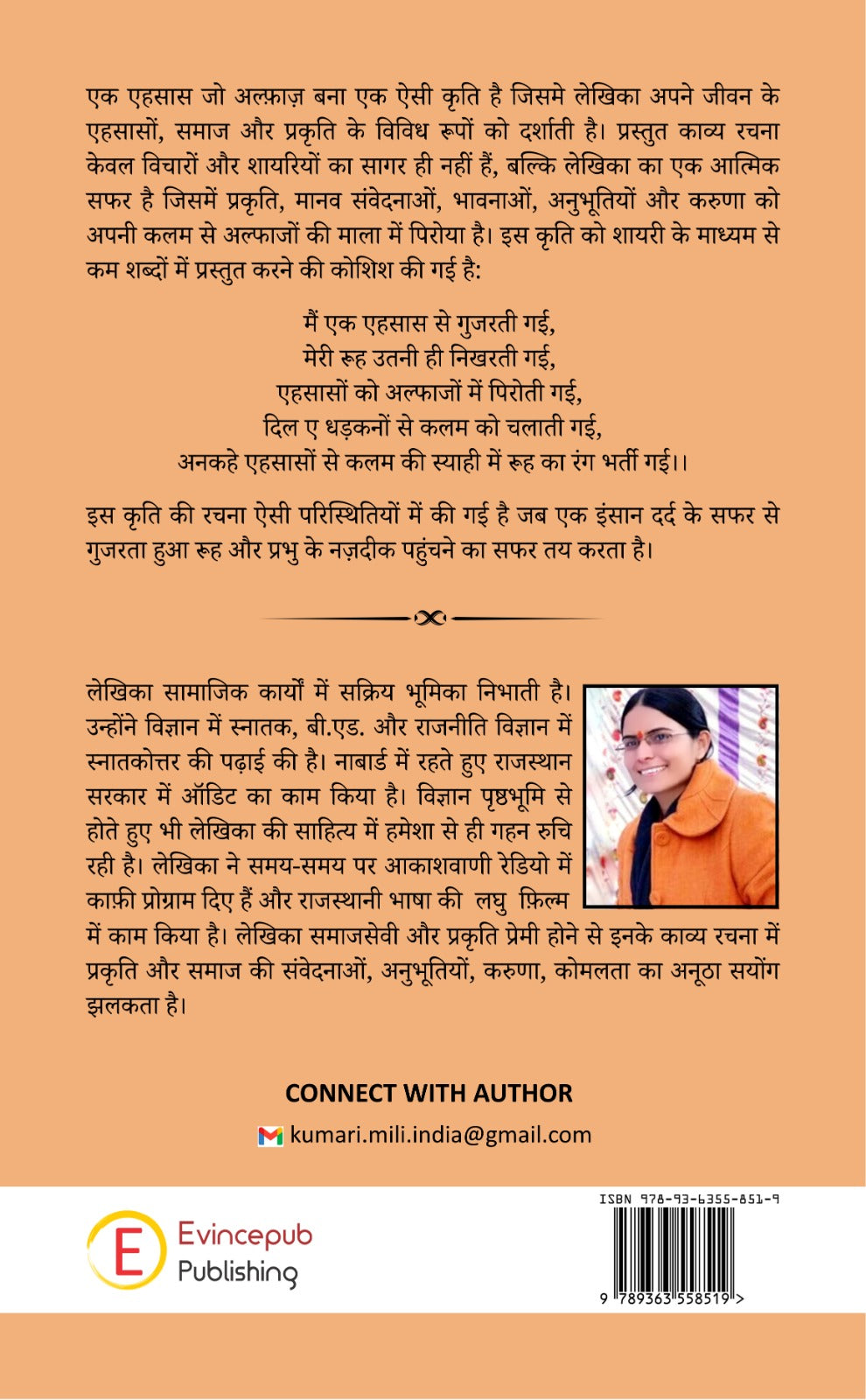 “Ek Ehsaas Jo Alfaz bana” is a soulful poetic collection where the author weaves together life’s emotions, society, and nature into expressive verses. More than just poetry, it is an inner journey—where unspoken feelings, human sensitivity, and spiritual reflection find voice through heartfelt lines.