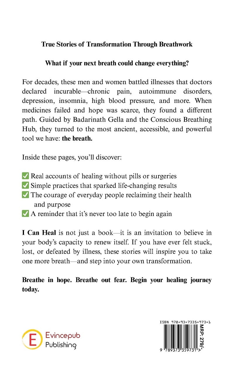 In a world where medication and technology often seem like the only solutions, this book offers another possibility: the power within. Each chapter chronicles a personal journey—raw, vulnerable, and ultimately uplifting. Guided by Badarinath Gella and the Conscious Breathing Hub, these individuals discovered that healing does not always come from outside interventions, but from tapping into the ancient, natural intelligence of the breath.