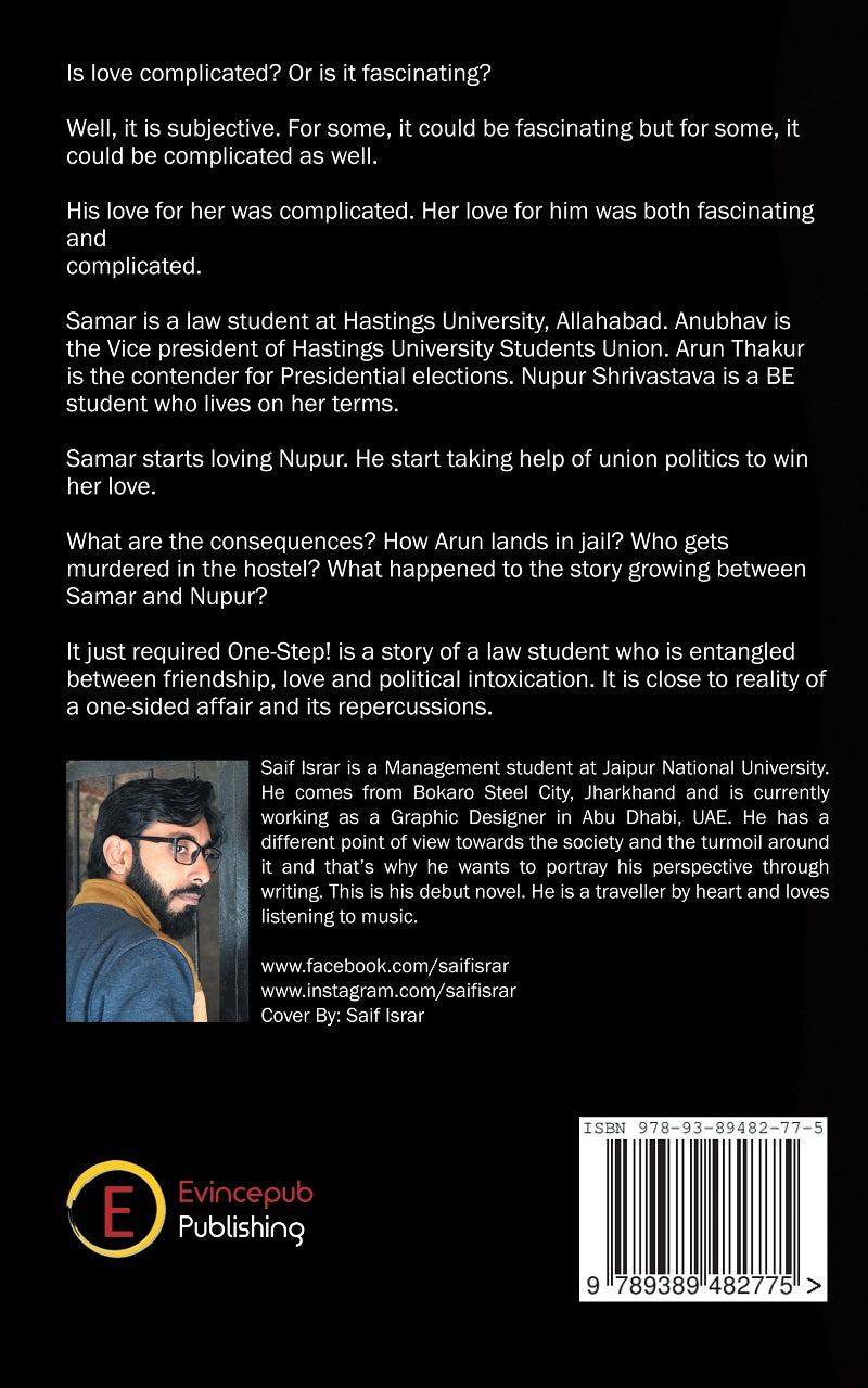 It just required one step, is a story of Samar Qureshi who enters the Hasting University to study LLB. He is a simple guy who minds his own business. He meets a girl, Nupur and falls in love with her. She is a bold and fierce girl with a no-nonsense attitude. He comes through the political scenario of the student union in the university and gets involved in it just to gain the power to woo Nupur. However, things started getting complex and it gets hard for Samar to come out of the entangled webs of politics and intoxication of power.