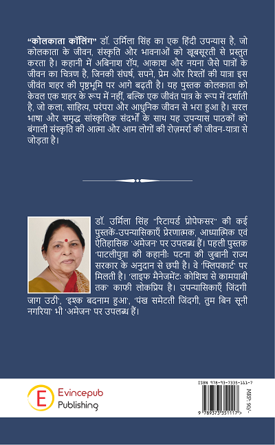 “Kolkata Calling” by Dr. Urmila Singh is a Hindi novel that beautifully captures the life, culture, and emotions of Kolkata. The story follows characters like Abinash Roy, Akash & Nayana, and others, showing their struggles, dreams, love, and relationships against the backdrop of the vibrant city. The book paints Kolkata not just as a city, but as a living character full of art, literature, tradition, and modern life. With simple storytelling and rich cultural references, it connects readers to the charm of Bengali culture and the everyday journey of common people