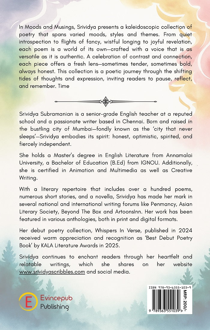 The book is an immersive collection of poems that explores common and relatable themes. It gives the reader an insight into various poetic forms that effectively capture the essence of the verse. Every poem, written to depict different moods of man, is simple, inspiring and enigmatic.
