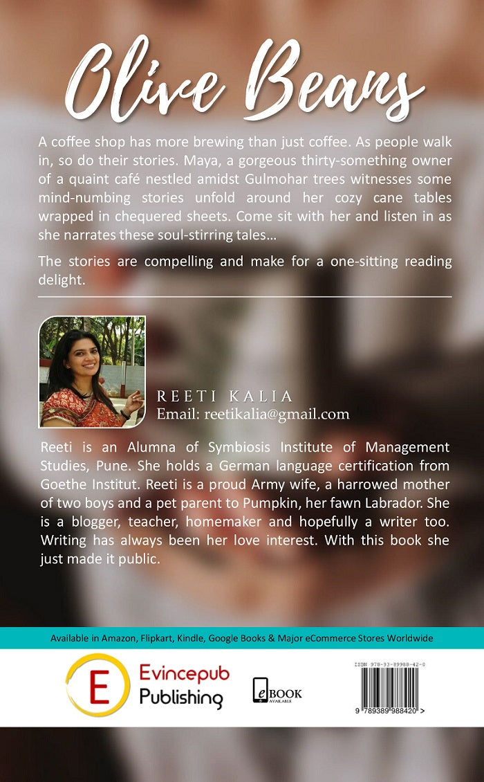 Olive Beans is a collection of short stories inspired by real-life events. The stories unfold in a café. Maya, the café owner narrates them with deep compassion as she accidentally stumbles upon them. The stories are heartwarming and heartbreaking all at the same time. They make a compelling narrative as they are nuanced with a range of emotions. The stories are sure to stir the reader and make it a one-sitting reading delight.