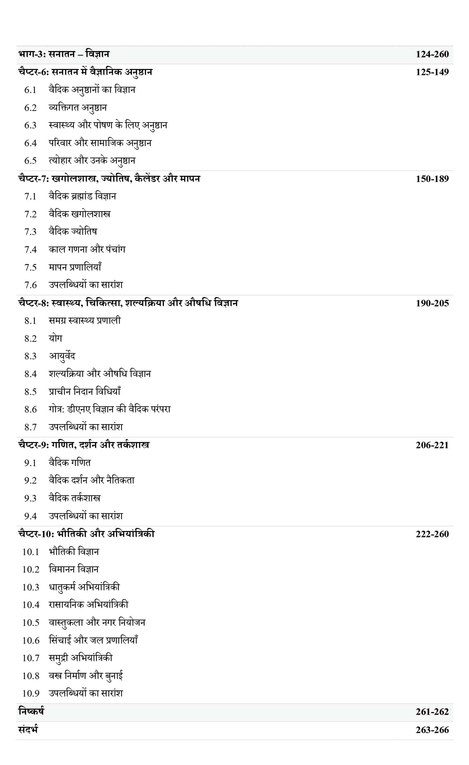 दूसरा भाग सनातन जीवन शैली के आध्यात्मिक और सांस्कृतिक पक्ष, शैक्षणिक एवं दार्शनिक परंपराओं की संरचना, और शास्त्रों में समाहित ज्ञान के बारे में बताता है। फिर तीसरा भाग प्राचीन भारत के वैज्ञानिक उपलब्धियों को उजागर करता है: जैसे कि खगोलशास्त्र, गणित, चिकित्सा, धातुकर्म, अभियंत्रण और वास्तुकला, जिनमें से अनेक आधुनिक पश्चिमी खोजों से सैकड़ों या हजारों वर्ष पूर्व की हैं। उन्नत शल्यचिकित्सा तकनीकों से लेकर जटिल नगर नियोजन, और खगोलीय गणनाओं एवं भौतिकी व रसायन विज्ञान में आविष्कारों तक, यह भाग प्राचीन भारतीय विद्वानों के अद्वितीय योगदानों को सामने लाता है।