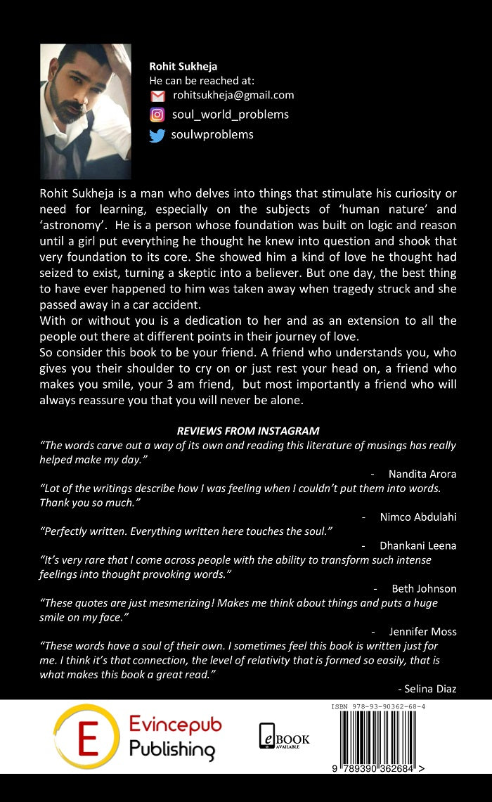 So consider this book to be your friend. A friend who understands you, who gives you their shoulder to cry on or just rest your head on, a friend who makes you smile, your 3 am friend, but most importantly a friend who will always reassure you that you will never be alone.